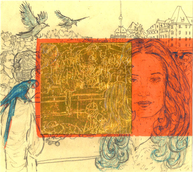 CONTACT | Object I | 2015 Berlin, colour drawing, needle work, Joss & special paper, A4 | 2015 Berlin, colour drawing, needle work, Joss & straw paper, A4 | 2015 Berlin, colour drawing, Joss-Papier, 15.6 x 14 cm | 2015 Berlin, 26x50x9 cm | |||||||||||||