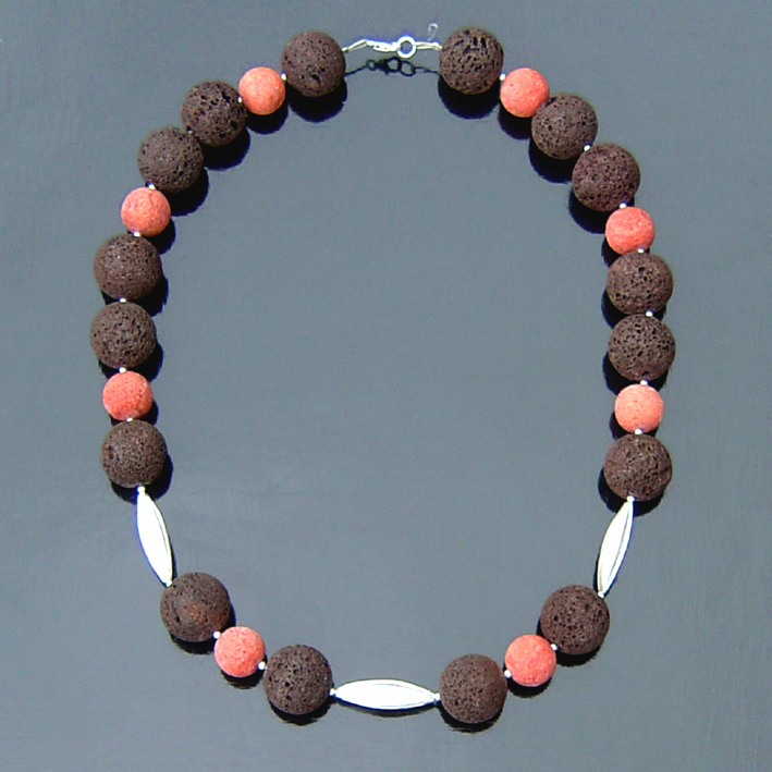 Foam coral collier with brown lava Extraordinary rosé foam coral collier combined with finest brown vesuvius - lava along with waved 925o silver discs and closure Nr. OAD090316 - 160.00 Euro |