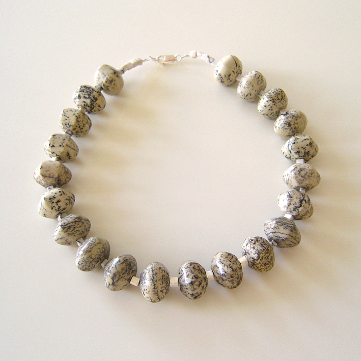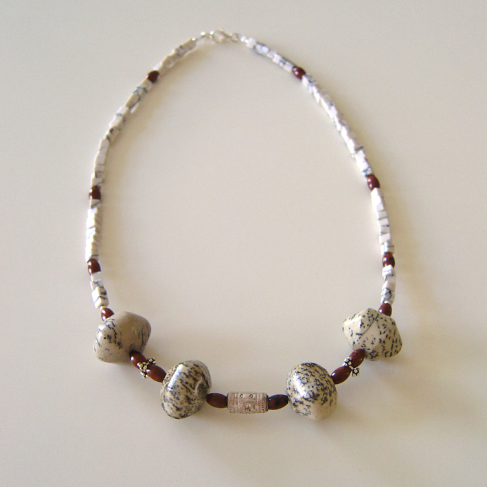 Silver collier with jasper variety Collier with faceted beads and cubes of finest grey jasper among earthly red jasper, pure 925o silver elements and a silver closure Nr. OAD130603 - 135.00 Euro |