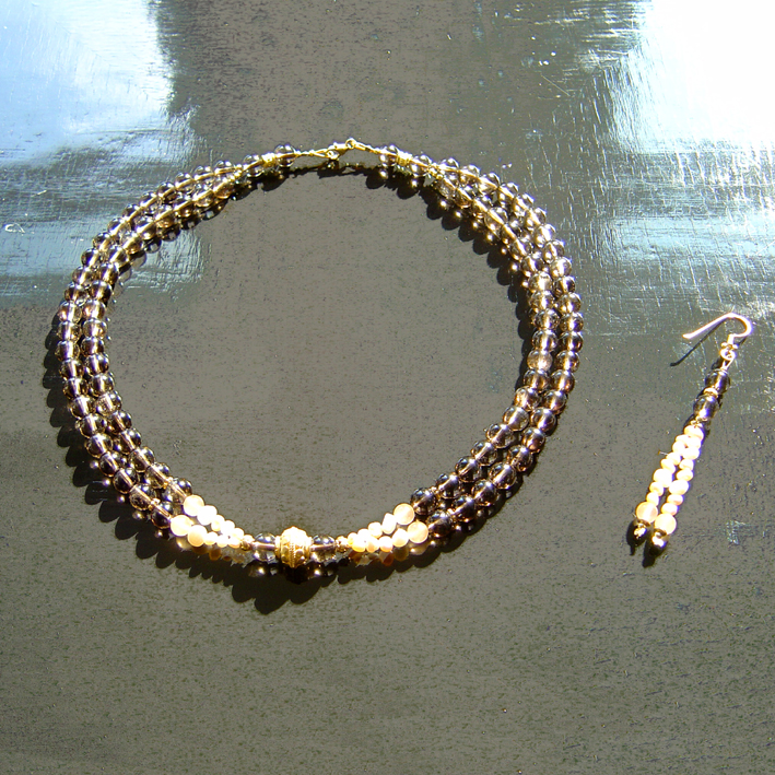 Rauchquarz Rundkette Edle Rundkette aus besten Rauchquarzperlen an handgewickelten 750o Golddrahtperlen Nr. OAD09025 - 230,00 Euro |