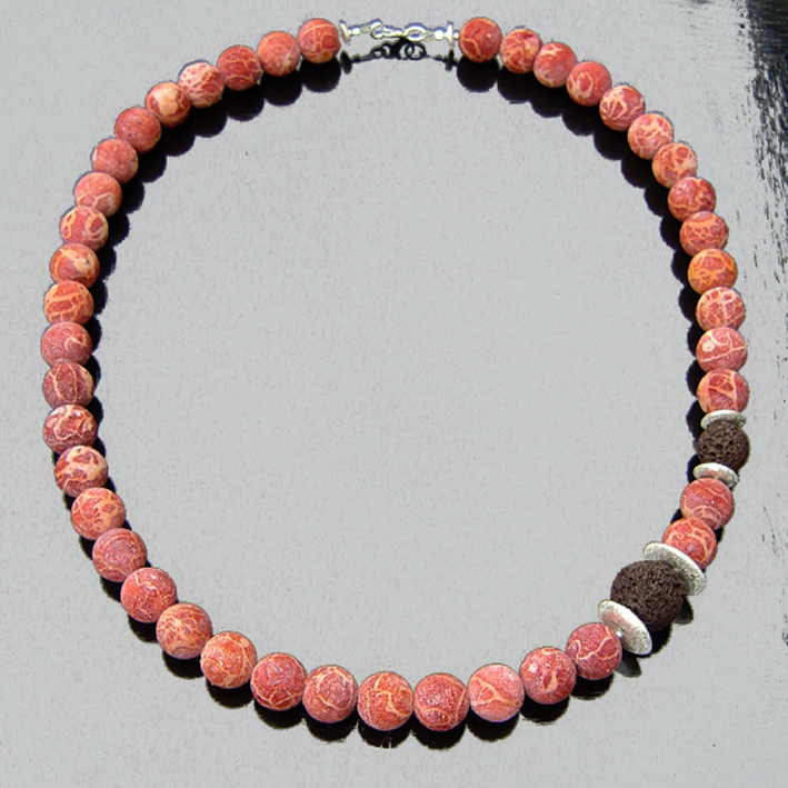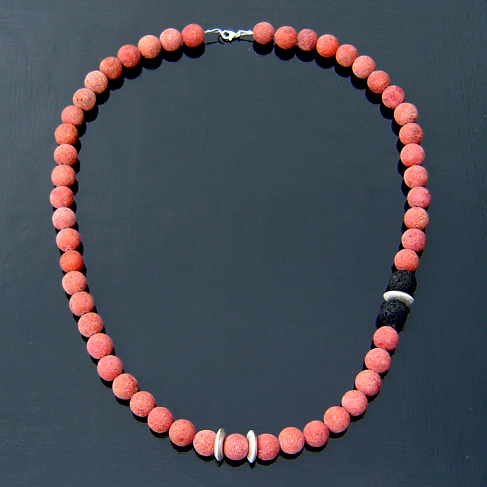 Schaumkorallen mit Lava Starke Kette aus roter Schaumkoralle mit schwarzer Lava und reinen 925o Silberscheiben Nr. OAD090209 - 195,00 Euro |